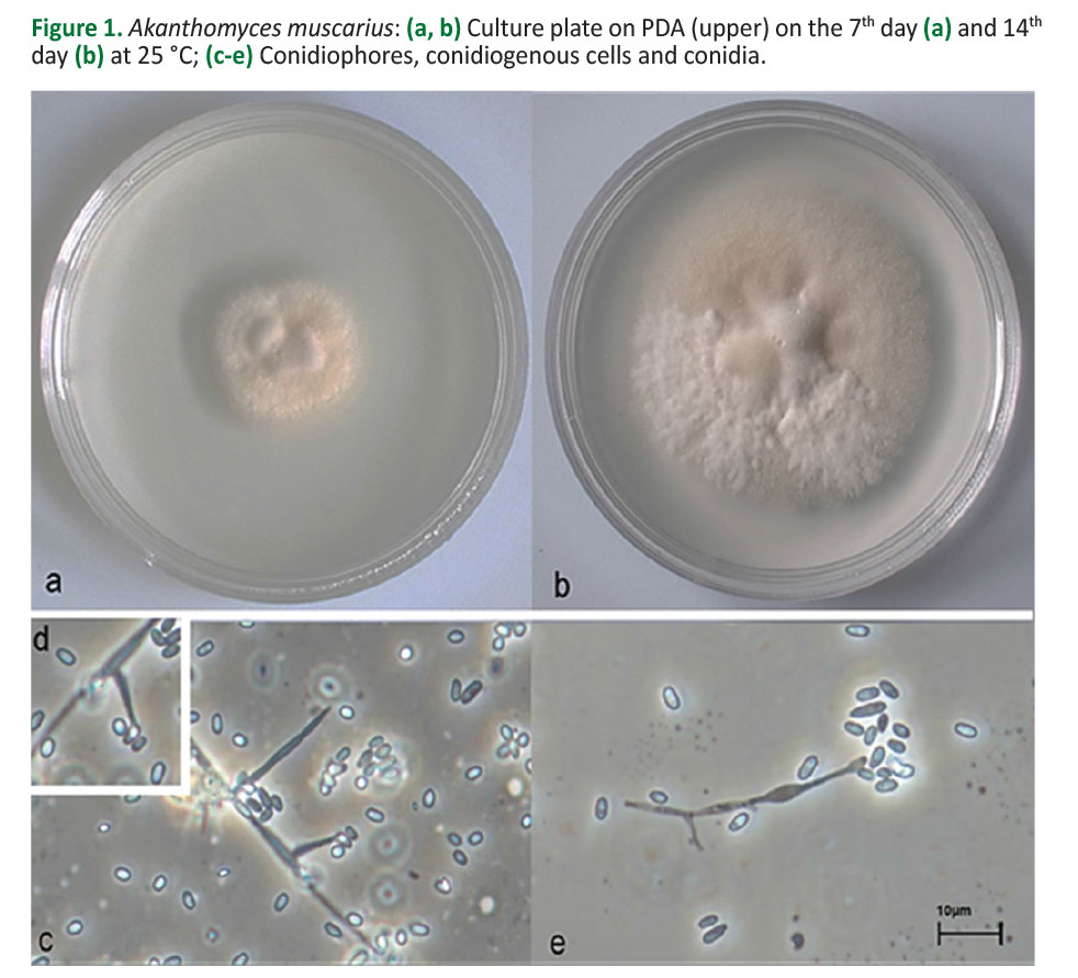 Broumandnia F, Rajabpour A, Parizipour MHG, Yarahmadi F, 2021. Morphological and molecular identification of four isolates of the entomopathogenic fungal genus Akanthomyces and their effects against Bemisia tabaci on cucumber. Bull Entomol Res 111: 628-636. https://doi.org/10.1017/S0007485321000298.
