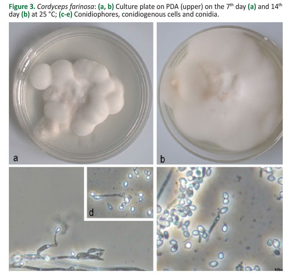Mascarin GM, Alves RPJ, Fernandes EKK, Quintela ED, Dunlap CA, Arthurs SP, 2018. Phenotype responses to abiotic stresses, asexual reproduction and virulence among isolates of the entomopathogenic fungus Cordyceps javanica (Hypocreales: Cordycipitaceae). Microbiol Res 216: 12-22. https://doi.org/10.1016/j.micres.2018.08.002.