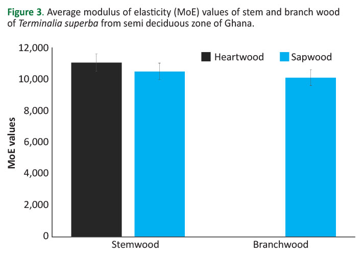 Table 5. Mechanical properties of stem and branch wood of Terminalia superba.