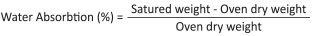 The initial weight of each specimen was recorded before they were horizontally submerged in a container filled with clean distilled water maintained at 26°C for seven days (Figure 1b). After the immersion period, the specimens were removed, and any excess surface water was gently wiped off. Subsequently, the specimens were placed in an oven for conditioning until they reached a moisture content of 12%.