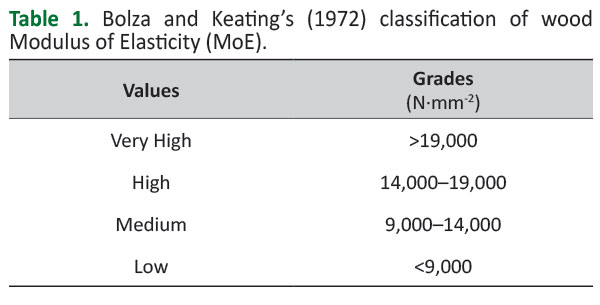 Table 1. Bolza and Keating’s (1972) classification of wood Modulus of Elasticity (MoE).