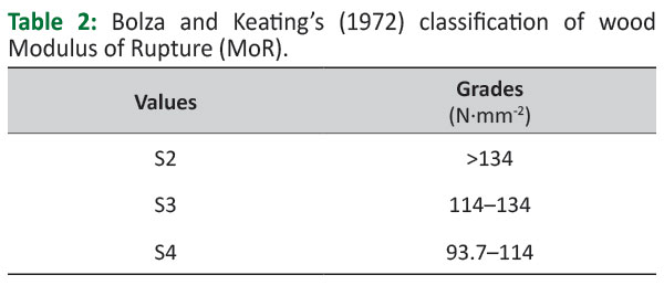 Table 2. Bolza and Keating’s (1972) classification of wood Modulus of Rupture (MoR).