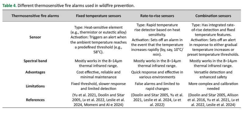 Table 4. Different thermosensitive fire alarms used in wildfire prevention.