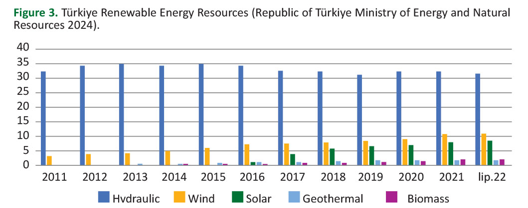 Türkiye maintains its energy needs based on fossil fuels, with a large proportion of imports. Due to the insufficiency of energy resources, it is far from a supply to meet the demand. However, the renewable energy potential is quite high. The studies carried out in recent years on energy production from these sources are aimed at utilising this potential (Özbek and Oğul 2023).