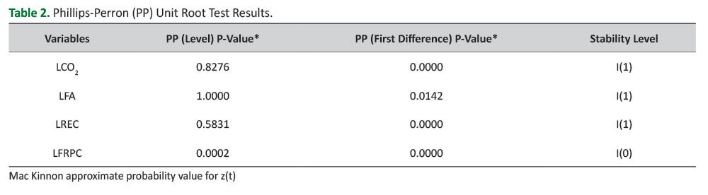 Table 2. Phillips-Perron (PP) Unit Root Test Results.