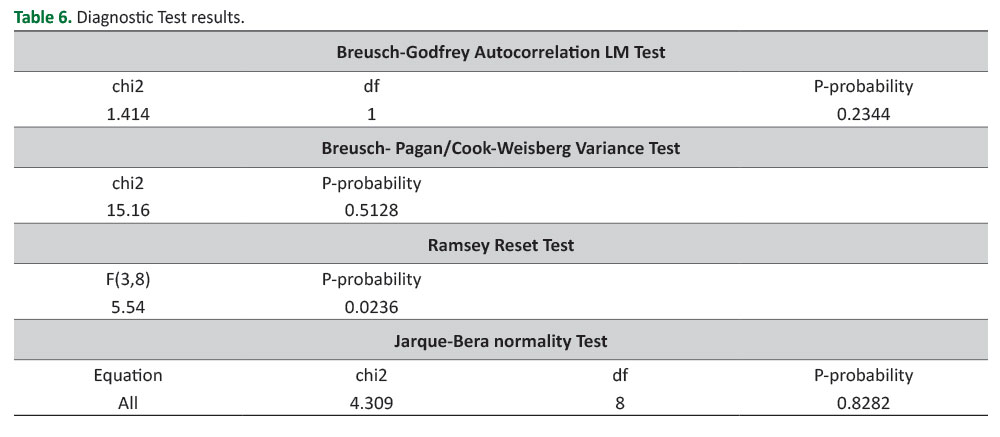 The results of these diagnostic tests prove that the basic assumptions of the model are generally valid and support the reliability of the analyses.