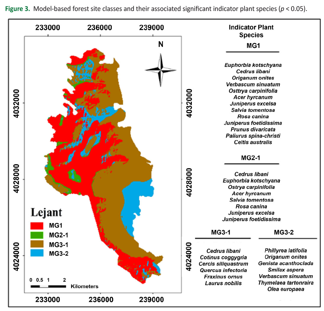 The identification of forest site classes that host high species diversity, endemic or relict taxa, and ecologically valuable resources such as medicinal and aromatic plants, plays a crucial role in determining priority areas for conservation and sustainable management. These findings are particularly relevant given the increasing threats to natural forest ecosystems due to climate change, pollution, forest pests, invasive species, fires, and grazing pressure (Başkent et al. 2003, Özkan and Gülsoy 2010, Özkan and Mert 2011). The generated maps can serve as baseline tools for forest managers to track ecosystem dynamics, assess site-specific pressures, and support regionally adaptive decisions.