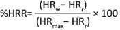 where HRw is the average working heart rate, HRr is the resting heart rate, and HRmax is the maximum heart rate (Vitalis 1987).