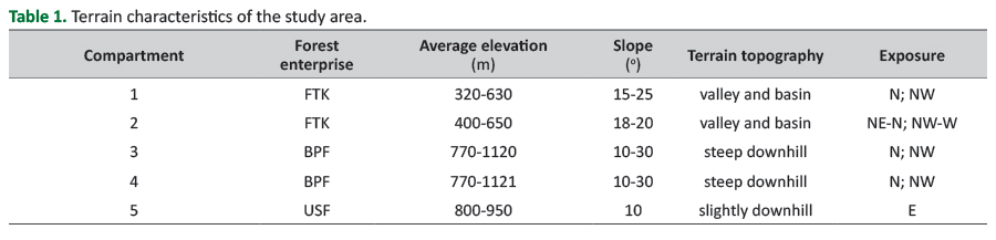 Based on data from the Federal Ministry of Agriculture, Water Management and Forestry (2021), the Federation of Bosnia and Herzegovina´s (FBiH) total forest and forest land area is 1,518,466 hectares, of which 1,241,336.1 hectares are state-owned. According to the Information on Forest Management in the FBiH in 2021, 40% of the state forests of the FBiH are high forests with natural regeneration, which constitute the basis of forest production. The forests of Bosnia and Herzegovina are identified as a major ecological and economic resources (Musić et al. 2013).