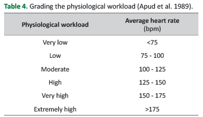 Table 4. Grading the physiological workload (Apud et al. 1989).